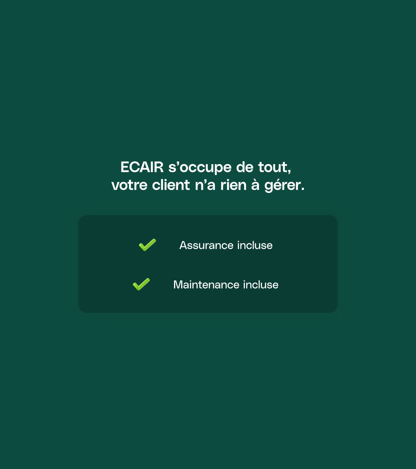 Votre client n’a rien à gérer au quotidien : assurance et maintenance sont assurées par ECAIR.